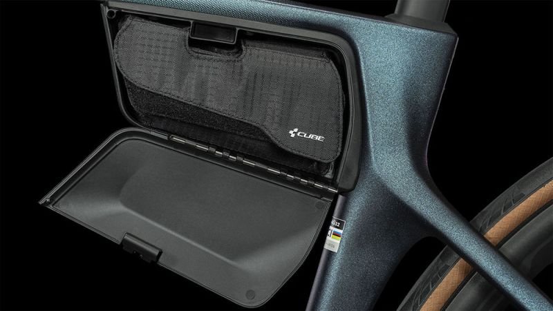 Bei der Entwicklung des Axial WS C:62 SLX Rahmens hat CUBE sich von ihren superschnittigen High-End-Rennrad- und Zeitfahr-Rahmen inspirieren lassen. Das Ergebnis ist ebenso aerodynamisch wie ästhetisch ansprechend – ein Allround-Chassis aus Carbon, das sie zugunsten von wenig Gesamtgewicht und hohem Fahrkomfort mit schlanken Sitzstreben und durchdacht geformten Rohrsätzen feinabgestimmt haben. Außerdem sind die Schalt- und Bremszüge semi-integriert, was das Handling optimiert und den Wartungsaufwand reduziert. Optional lässt sich eine Rahmenbox montieren, in der Energieriegel, Werkzeug oder zusätzliche Bekleidung Platz finden, falls die Tour doch mal länger dauert als geplant.