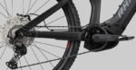 Der RENDER Rahmen ist ebenso ein optischer Leckerbissen wie Herberge für allerlei technische Finessen. So hat der Frontrahmen aus Carbon einen Verbindungssteg zwischen Ober- und Unterrohr, der sowohl als Designelement an einen Flügel erinnert als auch in technischer Hinsicht die Steifigkeit erhöht und gleichzeitig als Aufnahme für den Dämpfer fungiert. Die Dämpferverlängerung auf der anderen Seite fungiert gleichzeitig auch als Teil der Wippe und ermöglicht so einerseits die einzigartige Kinematik und trägt zudem zur sehr hohen Stabilität des Hinterbaus bei. Die 625 Wh große Batterie sitzt integriert im Unterrohr in einer Patrone, die den wackelfreien Sitz gewährleistet und außerdem die intern verlegten Züge seitlich führt und somit für Klapperfreiheit und Ordnung sorgt.