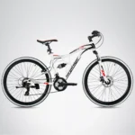 Auch die technischen Spezifikationen sind überzeugend. Das Kodiak Mountainbike verfügt über einen vollgefederten Hi-Ten Stahlrahmen mit einer Federgabel, die auch stärkere Schläge mühelos wegsteckt. Eine Shimano Tourney Schaltung mit 21 Gängen sorgt für komfortables Fahren auch in schwierigem Gelände. Das Bremssystem besteht aus einer vorderen Scheibenbremse und einer hinteren V-Bremse, wodurch die Vorteile beider Bremsenarten optimal kombiniert werden, was für erhöhte Sicherheit sorgt. Modern und einfach zu justieren ist der Aluminium MTB-Lenker mit A-Headvorbau, der dafür bürgt, dass das Bergsteiger Kodiak Mountainbike einfach nur gut in der Hand liegt. Die Rahmenhöhe des Fahrrades beträgt 39 cm.
