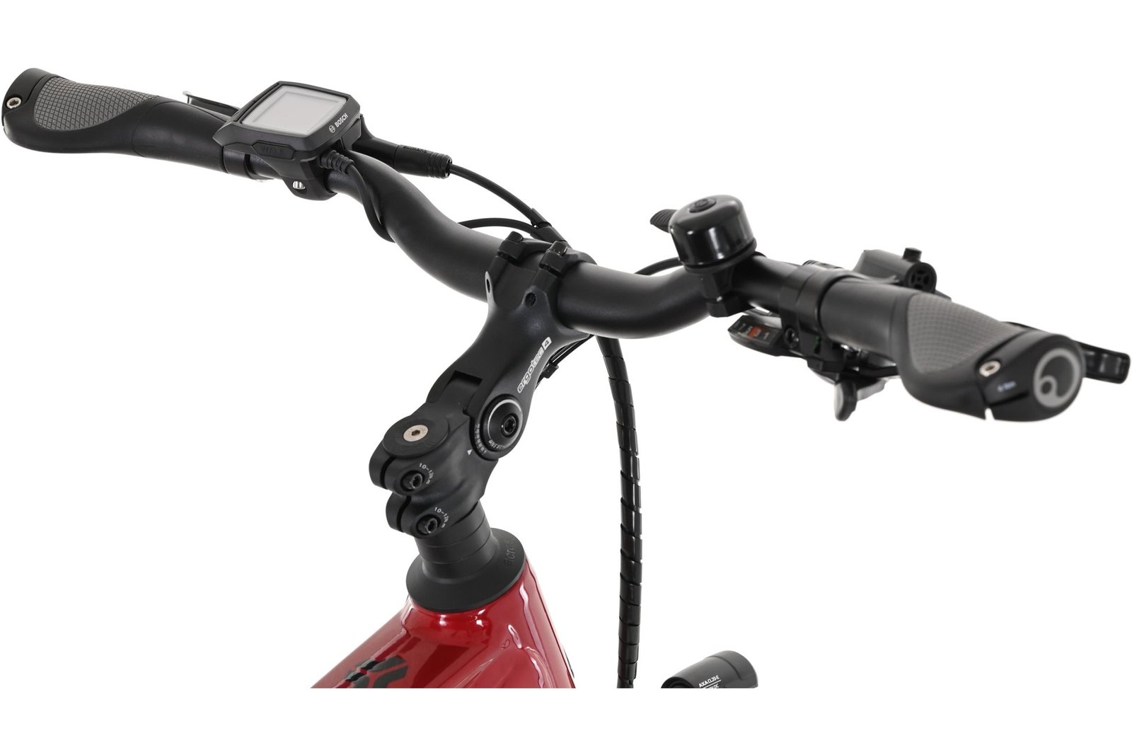 Beim Route E.420 ist es Carver gelungen, den großzügigen 500 Wh Intube-Akku schön zu platzieren. Zusätzlich besticht das E-Trekkingrad mit einem formschönen Damen Sport Rahmen aus Aluminium. Auch der kräftige Bosch Active Line Plus Mittelmotor findet elegant seinen Platz, so dass die Optik besonders gelungen wirkt. Es geht also zügig voran, auch dank der 28″ Laufräder. Ordentliche 50 Nm Drehmoment liefert das kleine Kraftpaket. Aber natürlich stimmt auch die Performance. Damen, die schnell von A nach B kommen wollen, dabei aber eine gemütliche Geometrie bevorzugen, sind daher beim Route E.420 absolut richtig.