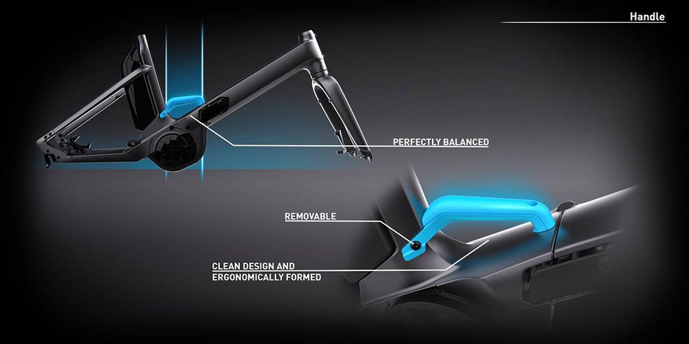 | Rahmen: | Aluminium Superlite, Comfort Ride Geometry, Semi-Integrated Carrier, Front-Carrier Ready, Slider Dropout, Integrated Folding Technology, Carrying Handlebar |