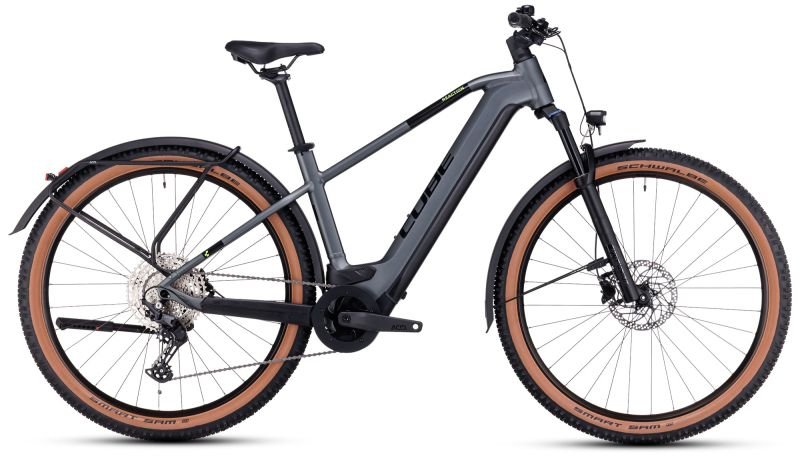 Dabei wechselt die breit gefächerte Deore 11-fach Schaltung von Shimano präzise von Gang zu Gang und macht selbst steile Anstiege zum Spaziergang. Volle Kontrolle in jeder Situation ist das Spezialgebiet der leistungsstarken hydraulischen Scheibenbremsen in Kombination mit 2.6 Zoll breiten Schwalbe Reifen. Außerdem hat CUBE dem Bike für top Fahrkomfort eine einfach einstellbare Luftfedergabel spendiert. Und einen Gepäckträger, Schutzbleche, einen Seitenständer und Lichter für top Support und Sicherheit auf dem Weg durch City oder für den Wochenendausflug.