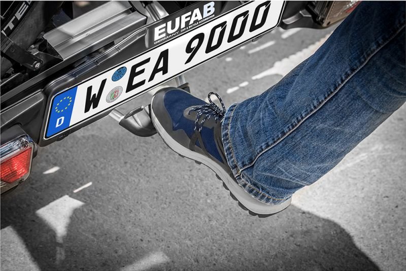 Der Eufab Bike Lift ist ein robuster und stabiler Fahrradträger und für den Transport von bis zu 2 Fahrrädern ausgelegt. Er ist mit einem Schnellverschluss und mit einem Abklappmechanismus ausgestattet, der durch ein Fußpedal bedient werden kann. Ein elektrischer Antrieb dient zum Absenken und Anheben des Fahrradträgers. Geeignet für Fahrräder mit “oversize”und Y-Rahmen bis ø 6 cm.