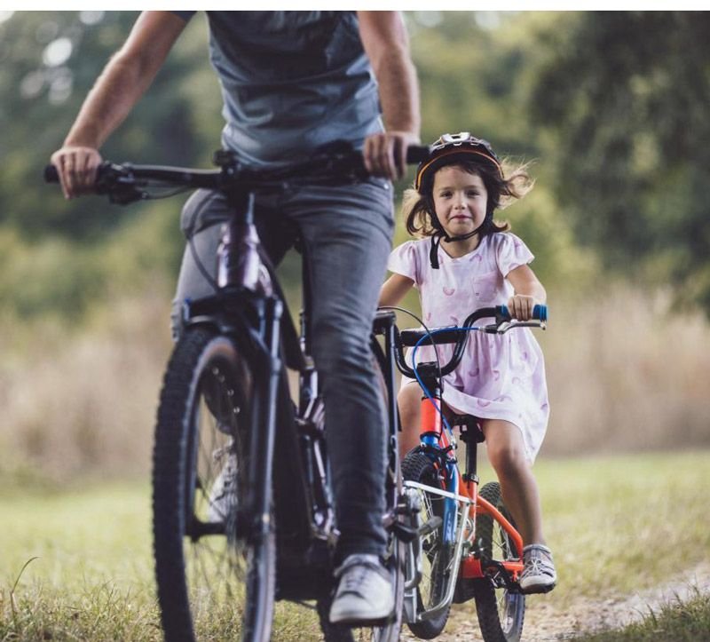 Und das Beste an diesem System: es funktioniert auf der Straße genauso gut wie im Gelände! So seid Ihr sicher unterwegs, kommt immer ans Ziel und die Kinder werden langsam ans Radfahren und den Verkehr herangeführt. Und das FollowMe wächst mit! Kind und Rad werden grösser – kein Problem mit FollowMe.
